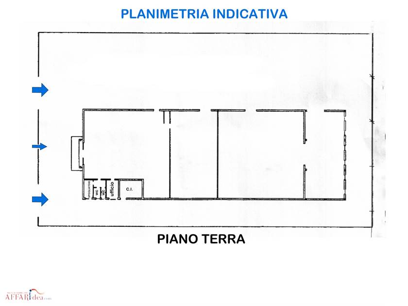 FORLI'. Z.I. PIEVE ACQUEDOTTO. CAPANNONE commerciale di categoria catastale D8, di circa 1180 mq, con altezza di circa H=4,55 mt e un grande PIAZZALE per un' area scoperta di circa 2043mq. All' interno è collocato un ufficio, due bagni e uno spogliatoio.