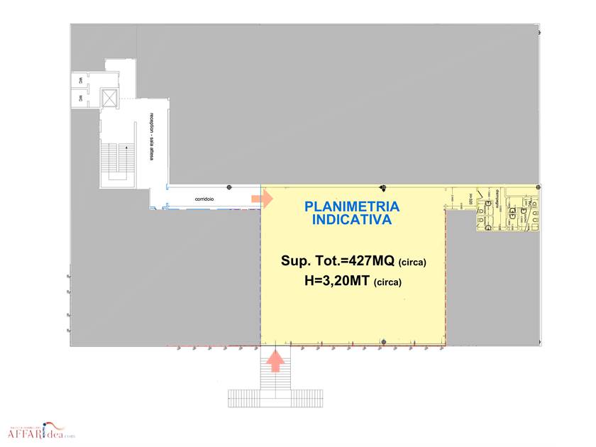 IMOLA - Z.I. SELICE. Ufficio negozio laboratorio open space al piano primo di circa 427 mq H=3,20 mt con due bagni e due ingressi.