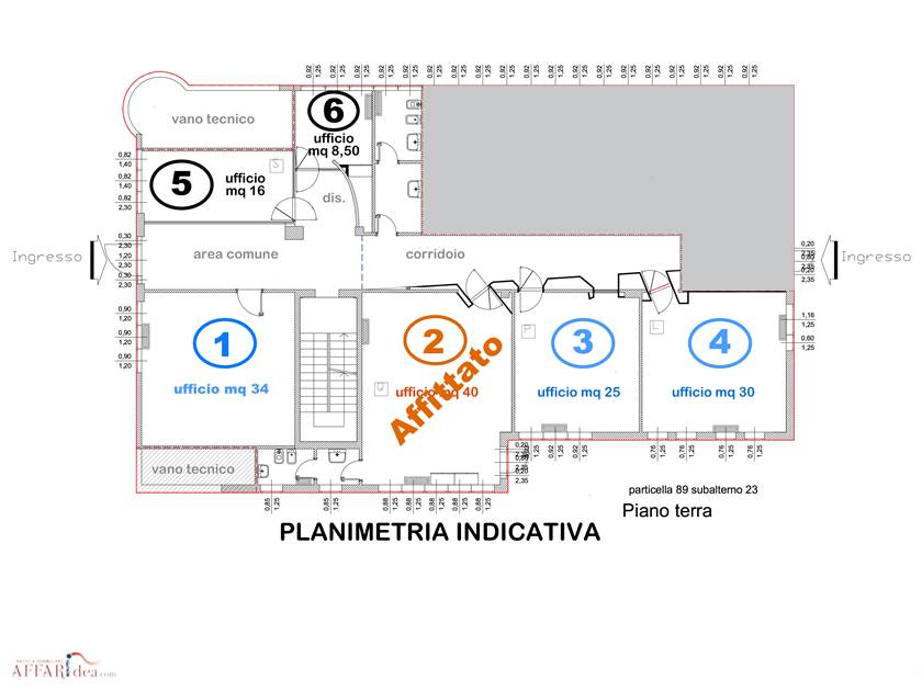 IMOLA - Z.I. SELICE. Ufficio (N.5+N.6 di superficie complessiva di circa 25mq al piano terra con piccolo disimpegno, completo di bagno e antibagno e ingresso-corridoio in comune con altri 4 uffici di cui alcuni sono ancora disponibili per l'affitto.