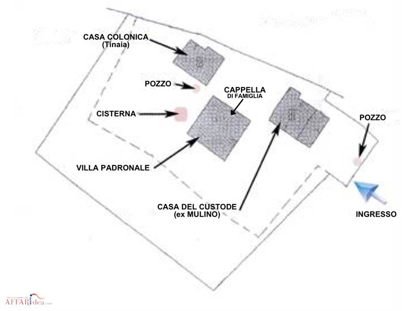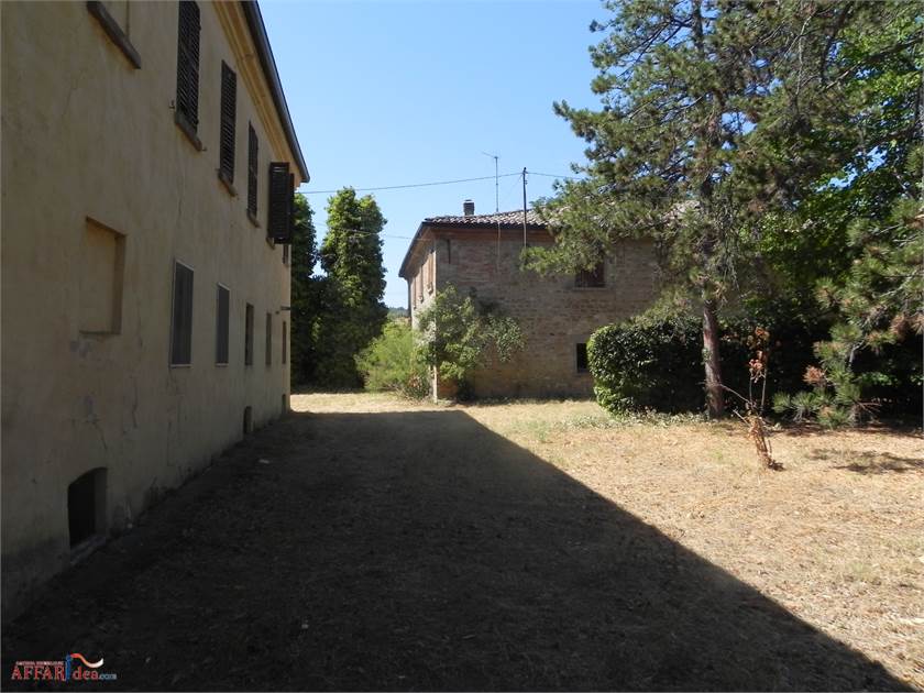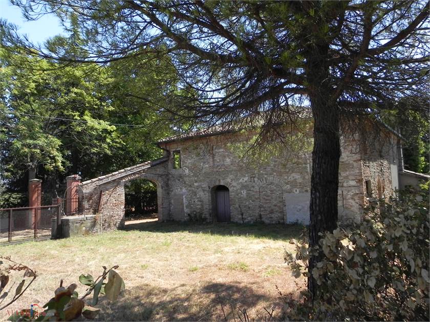 BORGHI - Colline lato RIMINI vicino a SANTARCANGELO. Casale risalente alla fine del 1700 con ristrutturazione ottocentesca è di notevole rilevanza storica, architettonica e tipologia a testimonianza di un periodo ricco di tradizioni e di cultura rimasto solo nella memoria dell'uomo e nelle riedizioni di un epoca ormai lontana. L'intero complesso da ristrutturare è composto da tre unità immobiliari, per riassumere si può cosi schematizzare: 1) VILLA PADRONALE che si sviluppa su tre livelli costituiti dal piano interrato con una cantina affascinante realizzata in modo armonico con muri e pilastri a più teste in mattoni pieni ed il soffitto con volte a crociera il tutto conservato ancora con la tipologia per la conservazione degli alimenti con una carratteristica "GROTTA" attualmente non agibile, piano terra adibito principalmente a zona giorno e contiene sul retro una graziosissima CAPPELLA di famiglia mentre il piano primo è adibito a zona notte. 2) CASA DEL CUSTODE (ex Mulino) un fabbricato realizzato in muratura mista pietra e mattone faccia a vista, che si sviluppa su due livelli costituiti dal piano terra ad uso servizi e dal piano primo adibito ad alloggio. 3) CASA COLONICA (Tinaia) un fabbricato che si sviluppa su due livelli costituiti dal piano terra ad uso servizi-cantina e dal piano primo adibito ad alloggio. La posizione del Casale è strettamente strategico a ridosso delle prime colline di Santarcangelo con una ampia vista sul mare della riviera adriatica e meraviglioso panorama dell'entroterra della Romagna con San Marino, Verucchio, Torriana, Montebello, San Leo e il Montefeltro. L'intero complesso, nonostante le elevate caratteristiche architettoniche e tipologiche, è in condizioni statiche precarie, salvo l'abitazione del custode. e per essere recuperato interamente necessita di interventi strutturali. Il Casale è provvisto di tre pozzi di cui uno all'ingresso e due sul lato sud, uno dei quali provvisto di sorgente con acqua un tempo potabile. Calcolo superficie commerciale: VILLA PADRONALE circa mq 885. CASA CUSTODE (ex Mulino) circa mq 449. CASA COLONICA (Tinaia) circa mq 253.